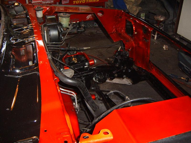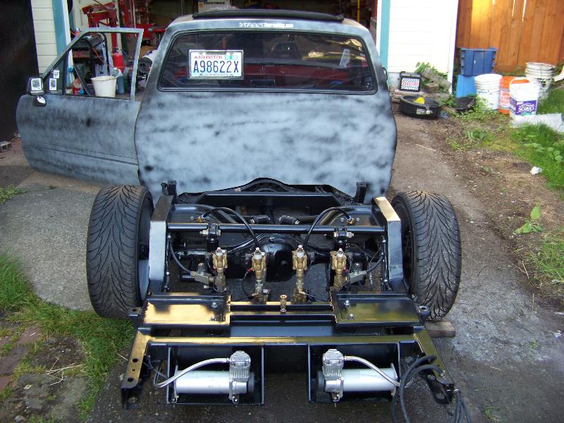 i saved its life from the pathetic notch and front & rear air shock setup (YES, I SAID AIR SHOCKS!!!) by using conitechs, GC 1/2" valves, notch, 4 link, tube upper & lowers, hand made tranny x-member, frame extended to fit longbed, & custom made 2 piece driveline w/ stock carrier bearing & crossmember added to frame (no z)