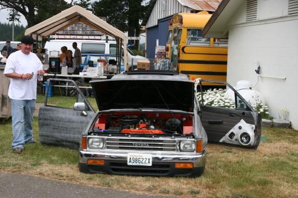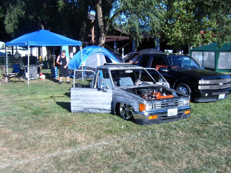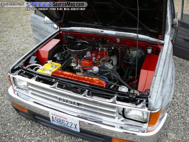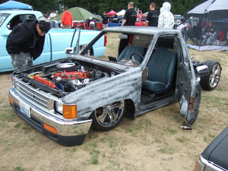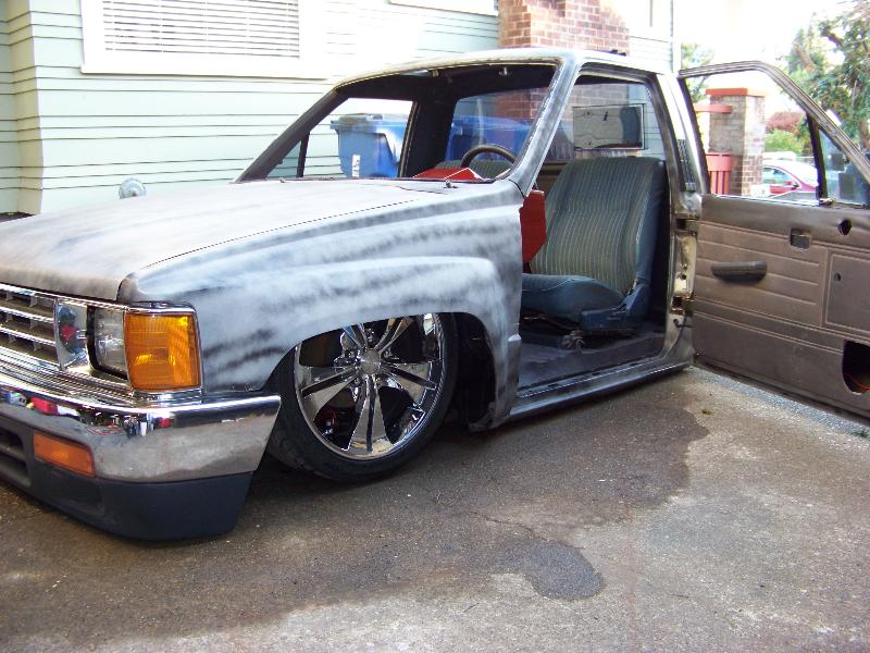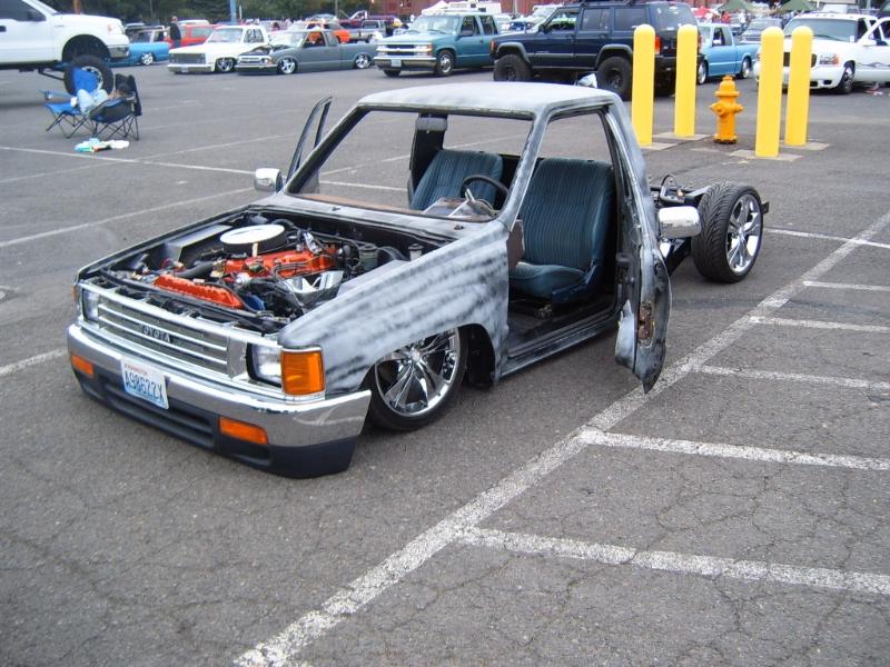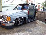 2& 3/4" traditional bd past pinch, suicide driver door, shaved everything, smooth back wall, american loooooongbed (came with japanese bed), 4x4 fenders, 95 4runner bumper, small-ass-pathetic rag top, smooth ass end w/led's STOCK HOOD!!!