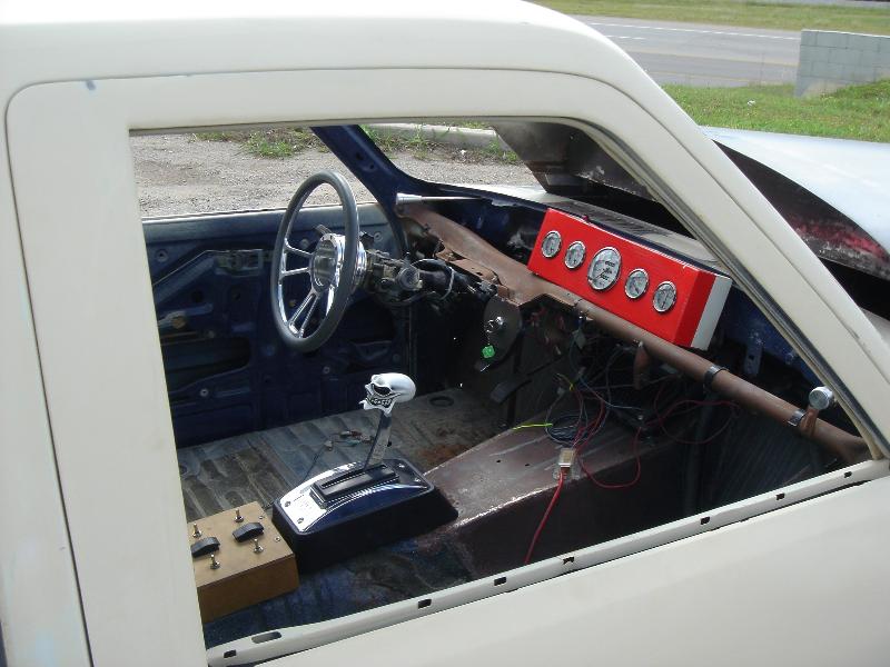 1957 chevy truck dash. tea's Design seats. custom console, door panels, back dash. all wrapped in cheap micro-suede and vinyl.