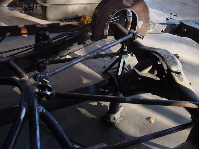 non-existent, planned on rodding it with 4-link but now going to cut it off and use IRS and rods all the way around