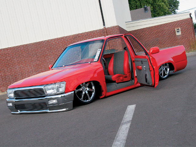 Shaved: Handles, rock guards on the bed, antenna, third brake light, hood squirters, and gas filler