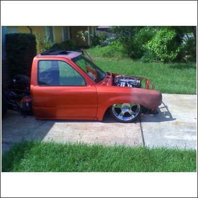 completly torn down, cab back off, bed off, bare frame, oh yeah time to do it again!