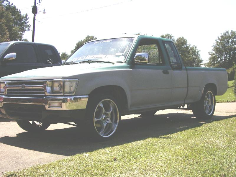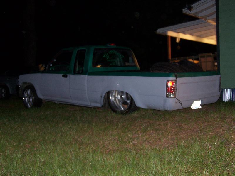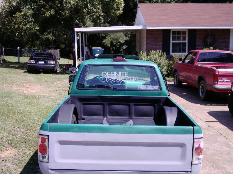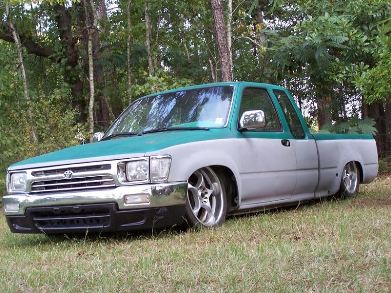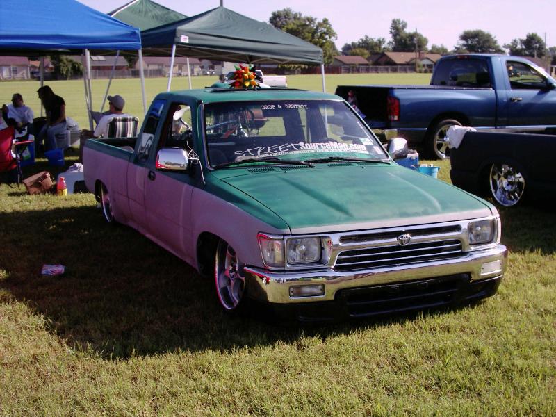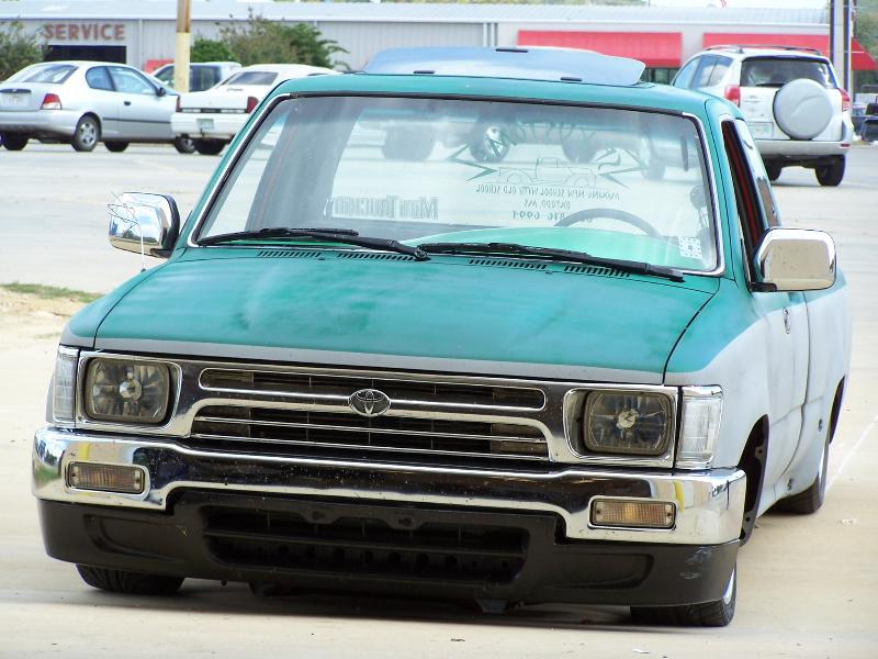 4x4 fenders and bumper 4runner valance clear corners , fake hid headlight conversion the glass ones! shaved gas door. shaved tailgate handle, roll pan molded in. Honda Civic door handles with hidden button to pop doors. 4 runner mirrors. sun roof