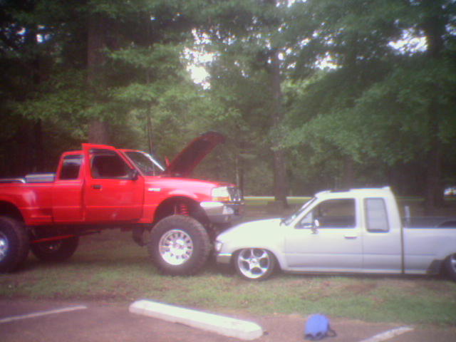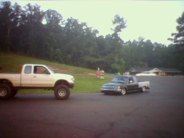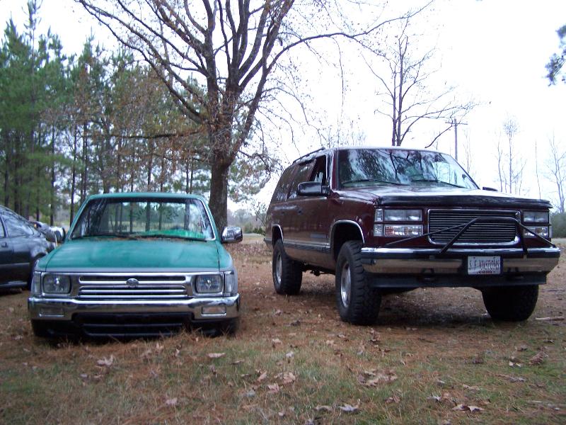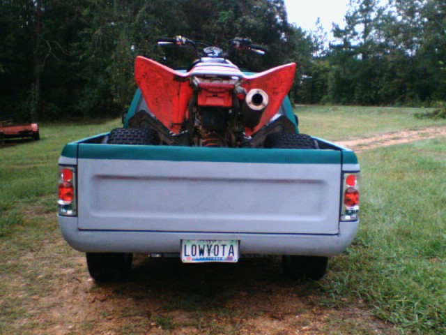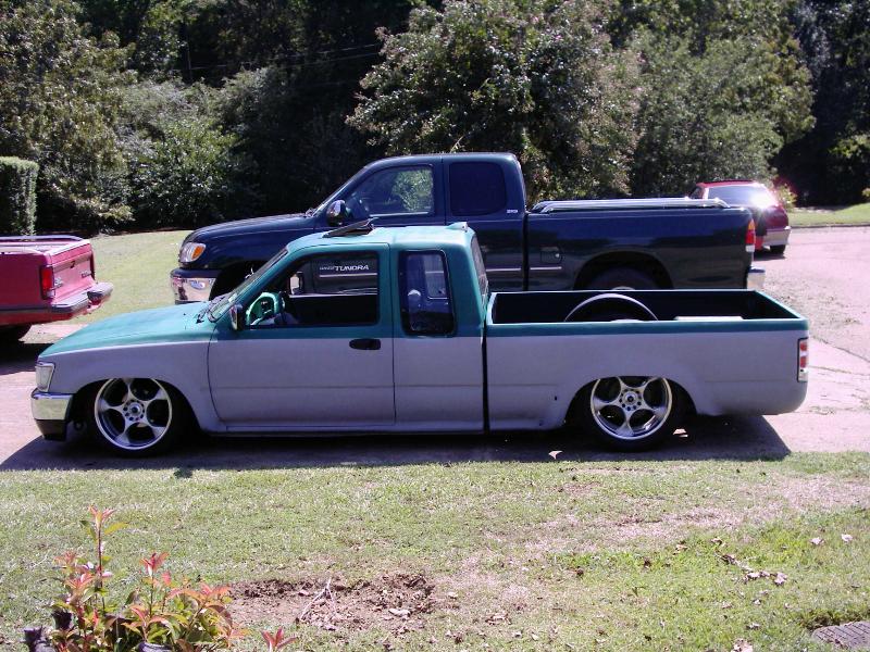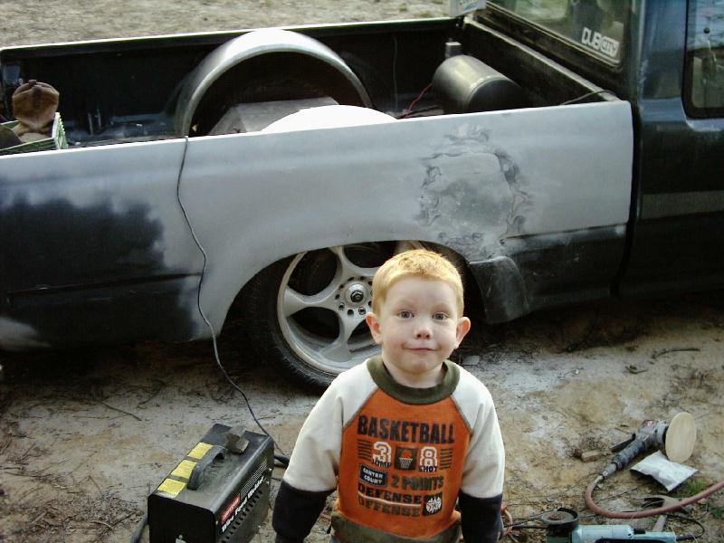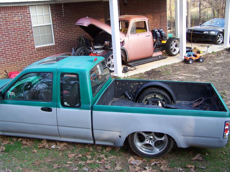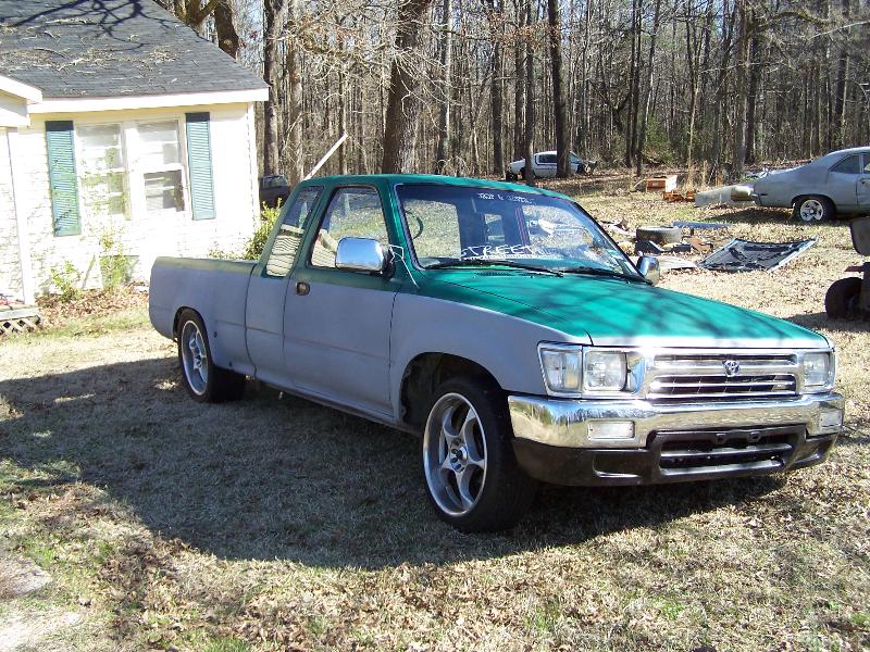 4x4 fenders and bumper 4runner valance clear corners , fake hid headlight conversion the glass ones! shaved gas door. shaved tailgate handle, roll pan molded in. Honda Civic door handles with hidden button to pop doors. 4 runner mirrors. sun roof