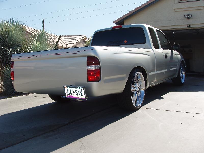 Repainted a year and a half ago Silver with Red pin stripe. Shaved Tailgate and Welded shut. Billet Grill, color matched check mate tonneau cover