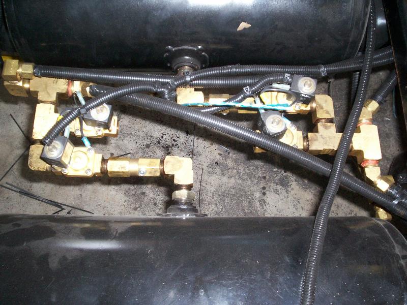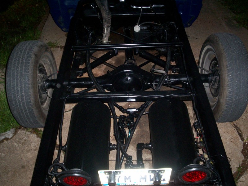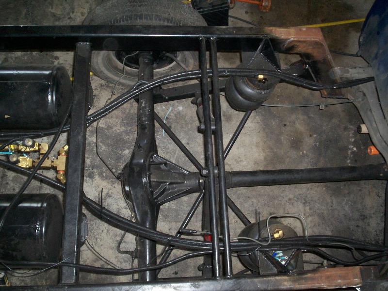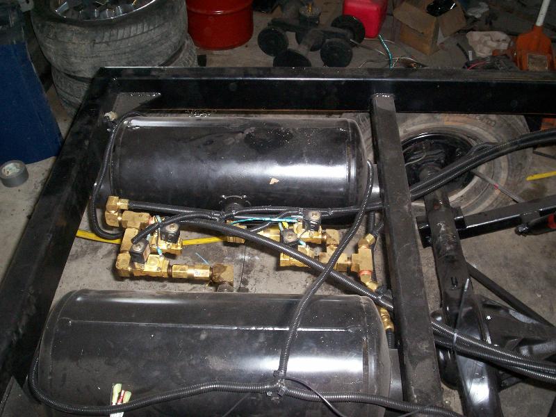 1/2 in valves, lines, 2600 bags, back halfed for 20's, CUSTOM BUILT CONTROL ARMS By ME, WELL THEIR TEMPORARY TILL I BUILD BETTER ONES.