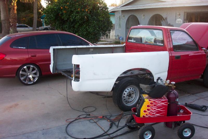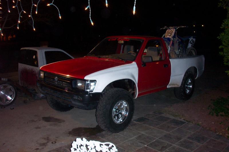 Fiberglass 4" Tacoma Conv. Bedsides, 4wd 4" Flare front fenders, clear corners, Diamond back conv. headlights, billet grille