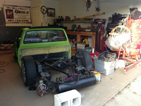 bagged front and rear with reverse 4 link with tradtional body drop.