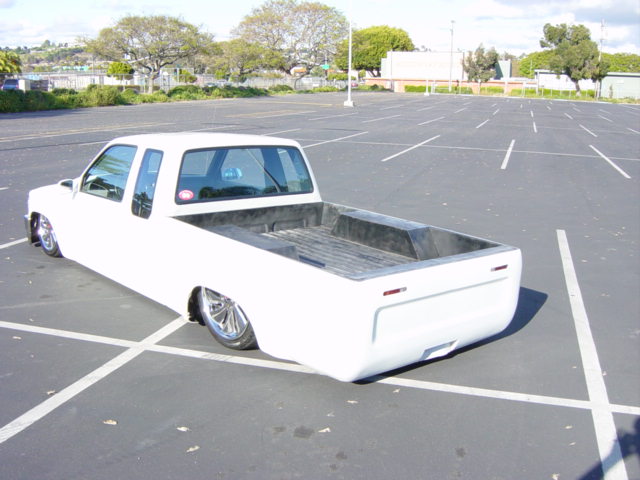 Bagged front and rear. Have had the same set up since 98 and have never had a problem with it. 2.5 inch Body-drop.