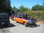 custom frame powdercoated kandy purple, 2000 vw silver parts and chrome everything else, used all stainless hardware, 300 zx rear end, speedway front tubular controlarms, slam es bags all 4, 8 smc valves,two viar 450 comps, 9 gallon chrome tank, frame built by bob grant and front of frmae done by me