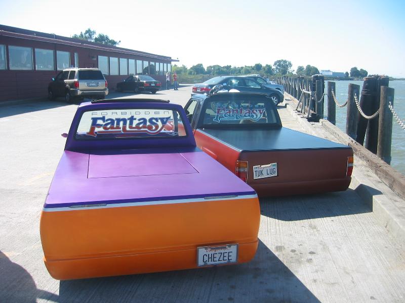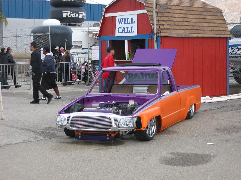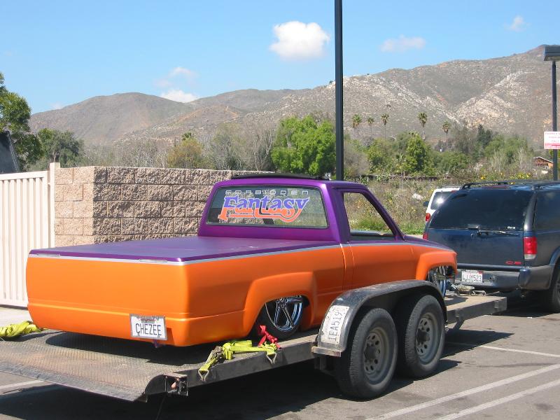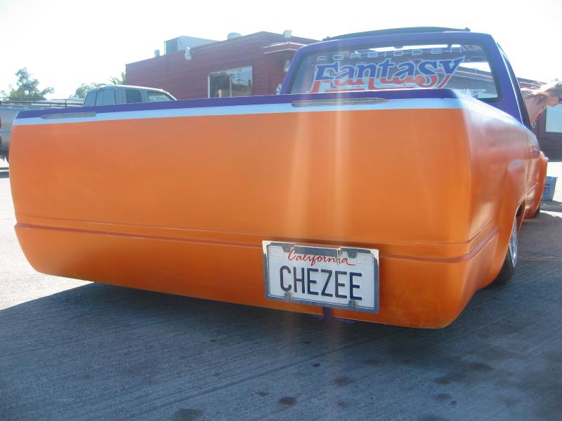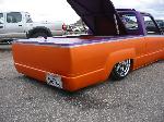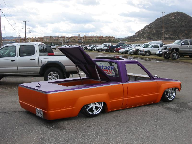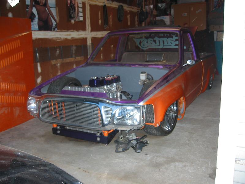 shaved door handles, gas door, taillights,cab side vents, antena ext. ragtop, half capped bed with aluminum tounel cover on air cylinders, custom coresupport to hold the 2003 taco front end, just shaved the firewall and frenched the booster into it 2 inches, capped rear inner fenders, haggon gas door on top of bed, hi- tech leds in top bodyline and trimmed down to look like tear drops, shaved mirrors with a harley davidson mirror, all 4x4 sheetmetal