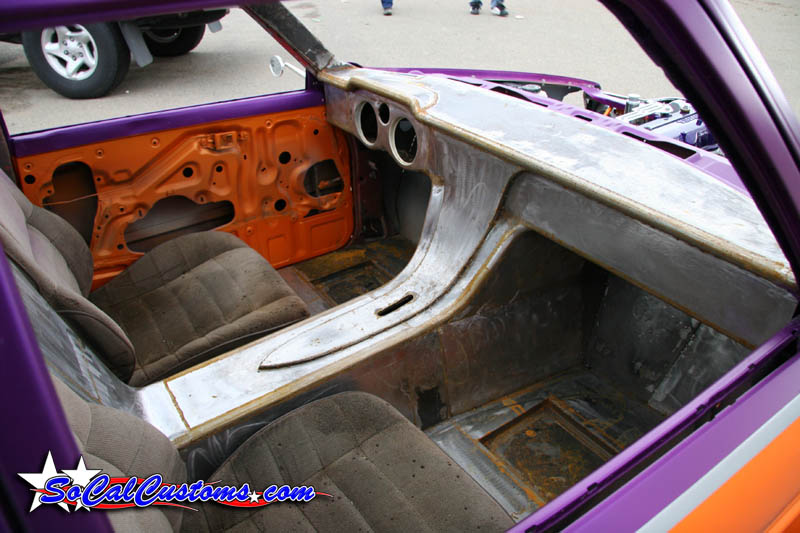 all metal interior with karmaghia gauge cluster, hand made floor going to be painted with leather frenched padding in the floor. everything includding the roof will be painted and the dash flows into the center counsel and back around the seats into the door and back into the dash