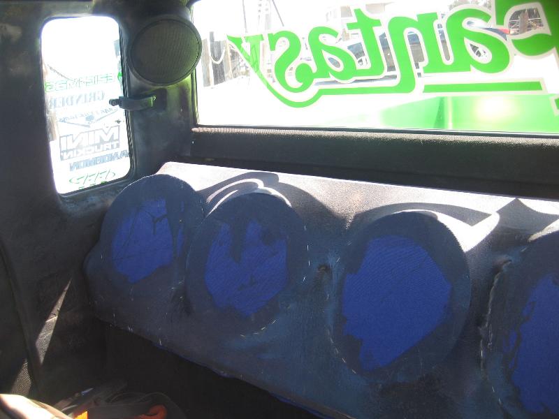 all fiberglassed and smoothed and painted dash, 70s toyota bench seat, billet bad stering wheel and fff mirror and door handles, window crank, and dome light
