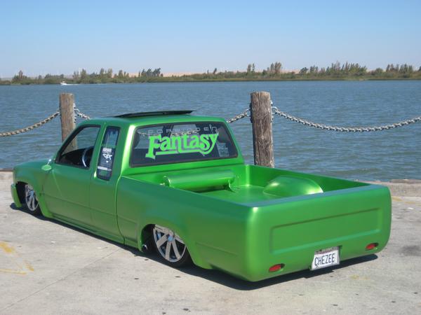 fully shaved, 97 taco front end, i built the bumper based off a grant one, made all my own grills, capped all inner fenders, sun roof, arlen ness mirrors, harley gas cap, 47 chevy LEDS, one off air tank made by me , fully shetted bed shaved cowl, much more