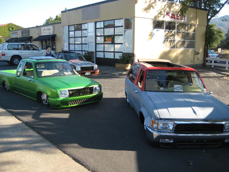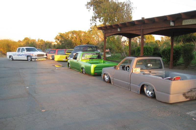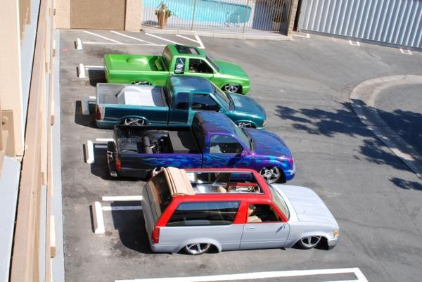 car show at the hotel 3 more trucks and cars were parked away all together6 mini 1 fullsize 1 bomb and 1 muscle car bagged