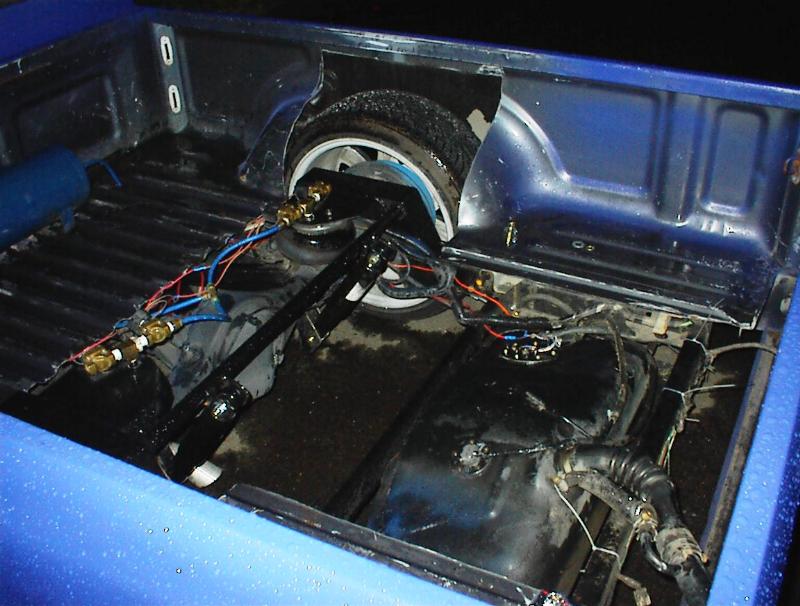 4x4 front end shaved everything doors,gas,tailgate with flame tailights,tail and corner lights and shaved bodyling for that baby smooth look.