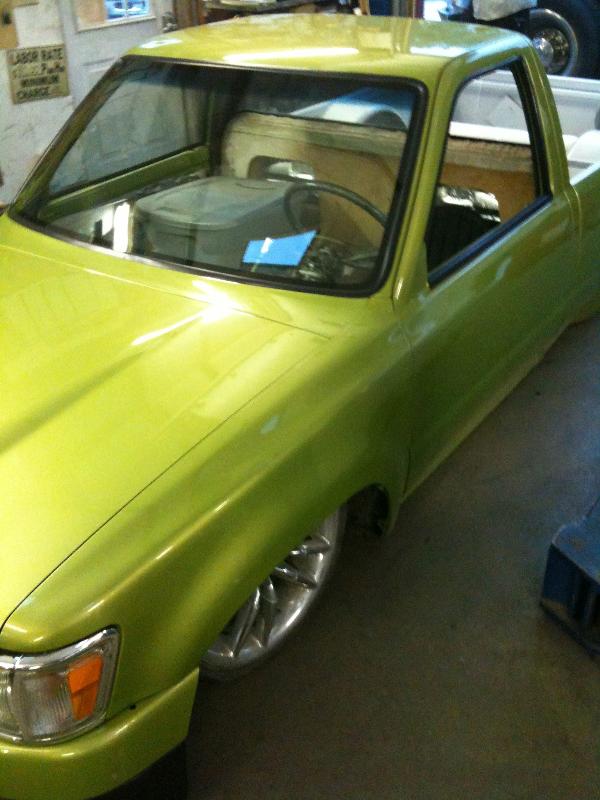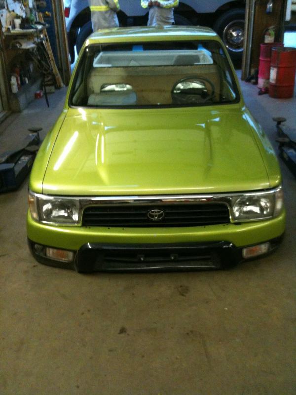 Honda del sol green, shaved mirrors,handles squirters,gas door,95 4runner front clip,shaved rear,59 caddy tails,4.5 inch body drop,cut rockers