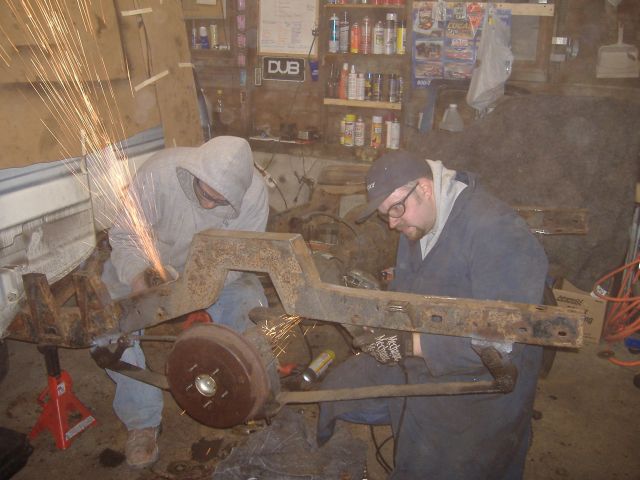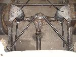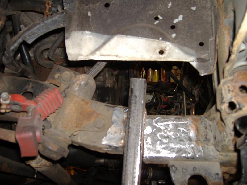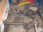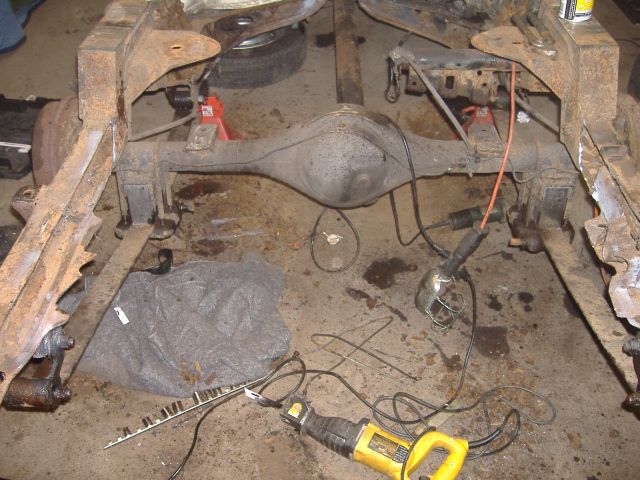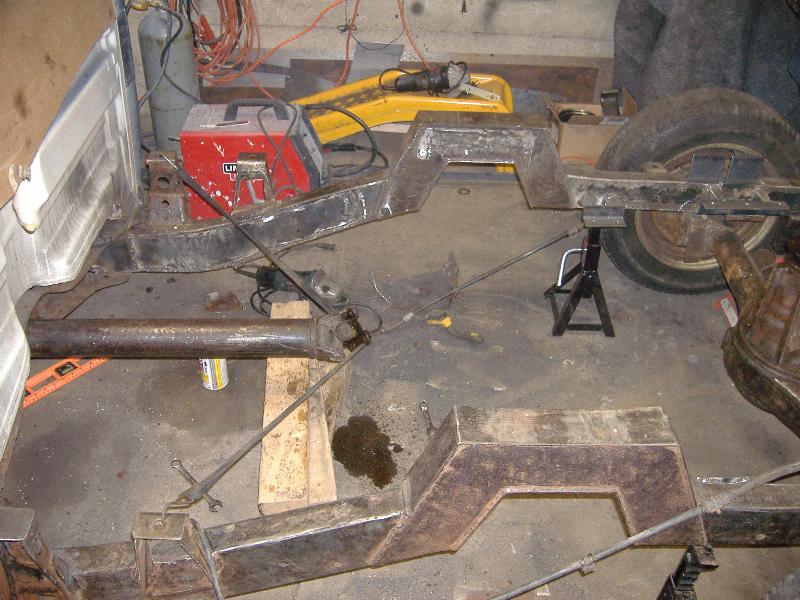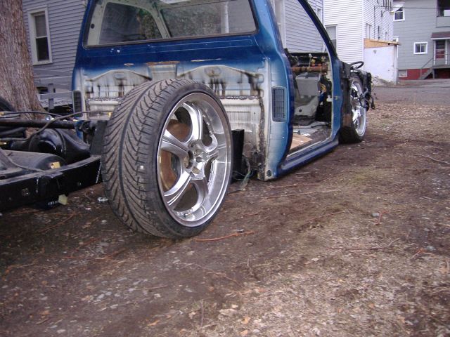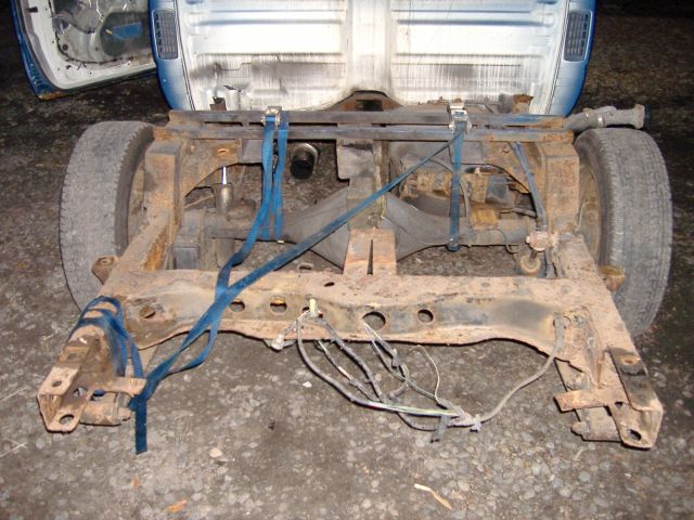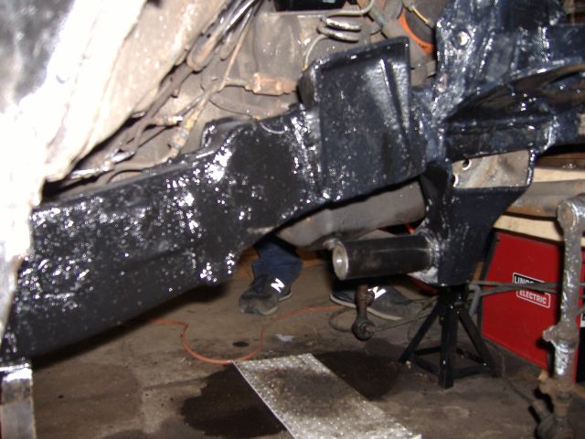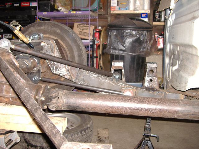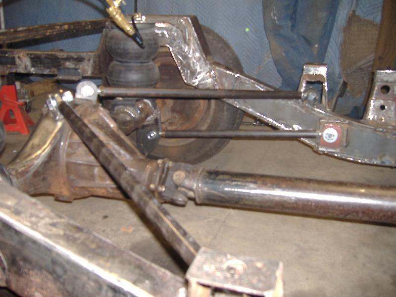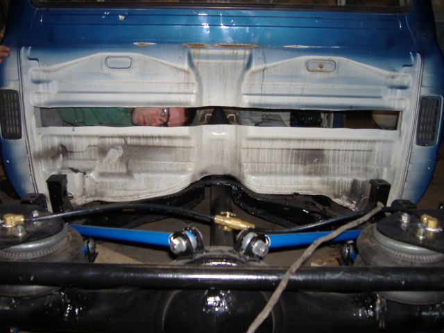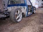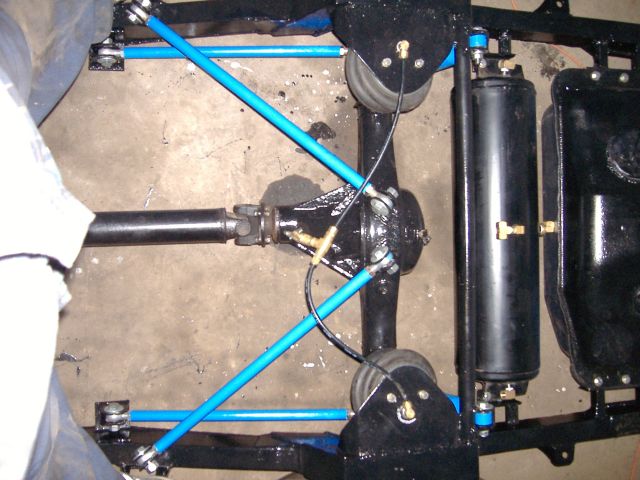new tranny crossmember,some new steel in the rear to fix the rusted out parts of the frame, gas tank relocated to the rear between the frame rails,air tank mounted in the rear between the rails, z'd front clip and body dropped.