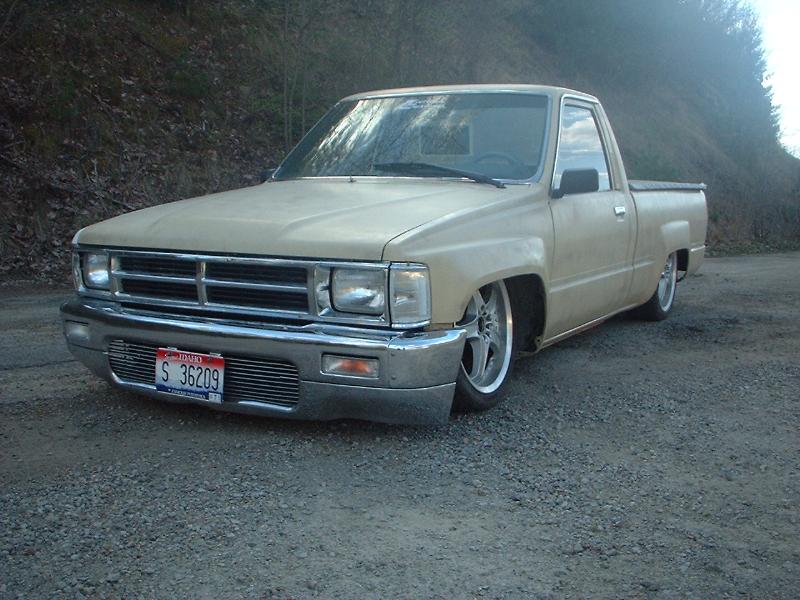 four wheel drive four runner fenders. 1994 cadillac tail lights. shaved gas cap. shaved door handles. shaved everything!. crome four runner grille and bumper. full neon blue under body kit. blue eliminators in the clear corner lights. alpine security alarm. frenched in liscense plate in the rear skin. soft toneau cover.