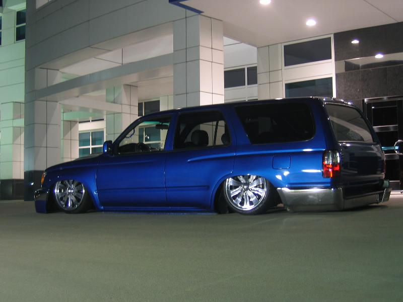 2001 front end, headlights grill, bumper with custom brackets. custom hood raised for engine clearance with sr5 hood scoop, shaved handles, roof rack, license plate recess, more to come...