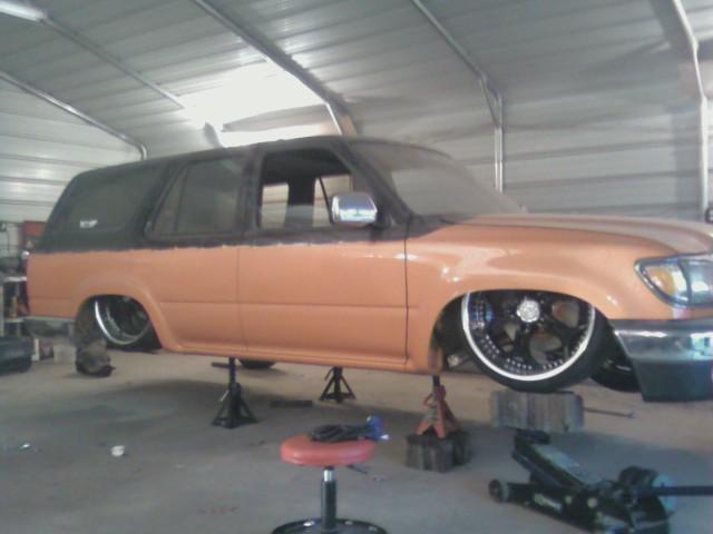 2002 TACOMA FRONT CLIP SECTIONED REAR BUMPER RESKINNED TAILGATE BODYLINE WRAPPED AROUND SHAVED -- TAILLIGHTS - DOOR HANDLES - ANTENNA - GAS DOOR - ROOF RACK - 3rd BRAKELIGHT - HOOD PISSERS - REAR WIPER ALL STEEL DOGLEGS IN REAR DOORS - PAINT PROVIDED BY R-M DIAMONT - PAINT APPLICATION BY BUTT-UHH SPRAYING - BILLET GRILLE PROVIDED BY PRECISION DESIGN