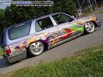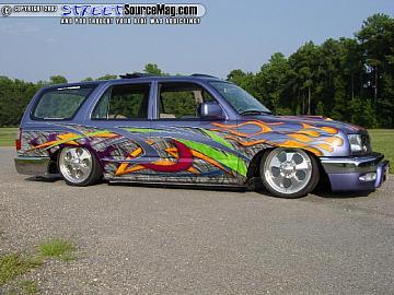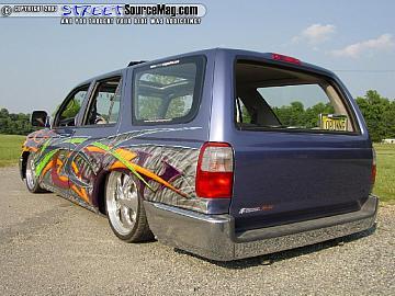 shaved door handles, shaved tailgate, shaved roof rack, shaved corner lites, shaved antenna, inalfa sliding ragtop, trenz billet grille,