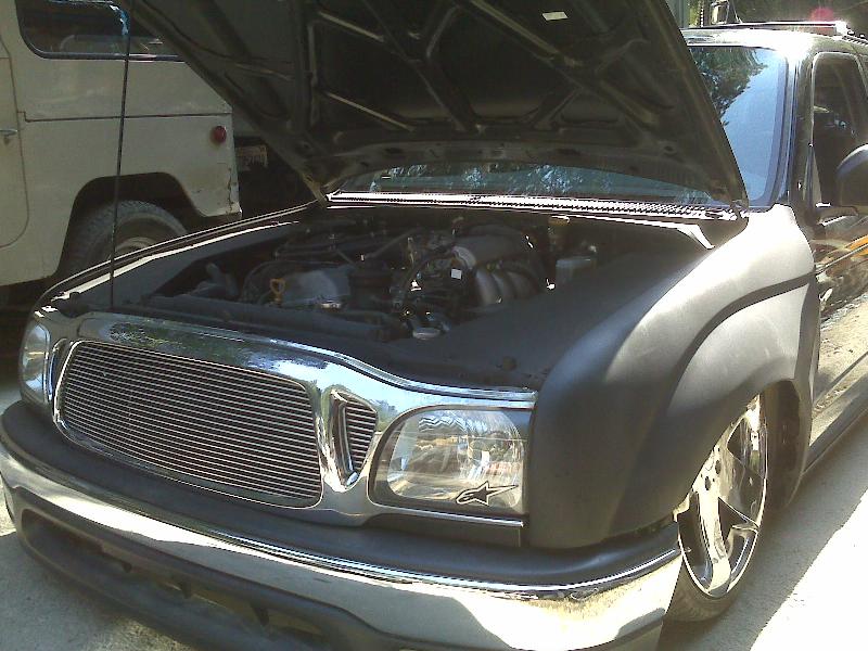 mostly stock with 2001 tacoma front end, minus side markers, antenna and windshield wipers