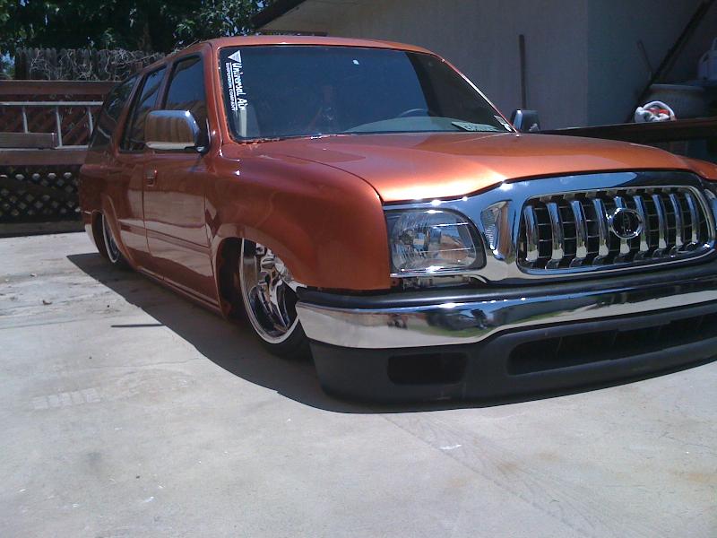 01 tacoma front clip, shaved rear doors,corvette orange paint