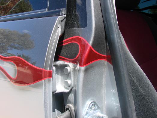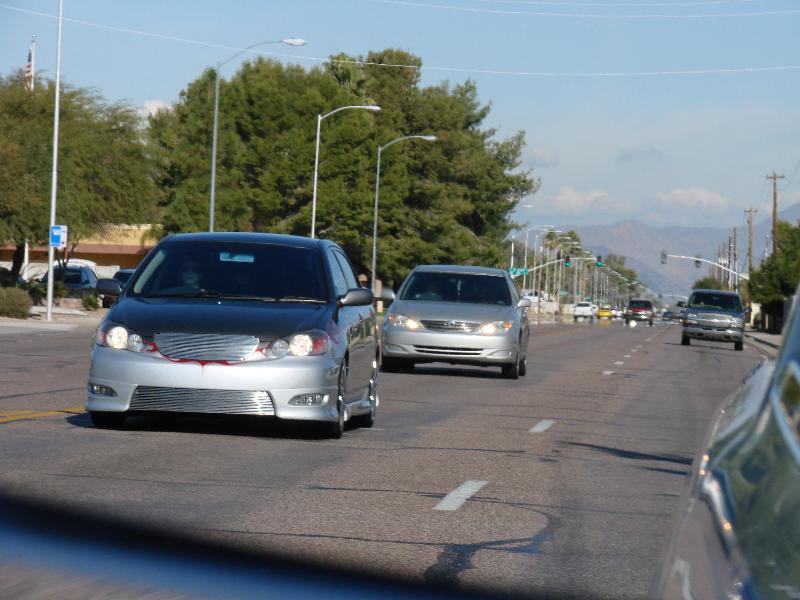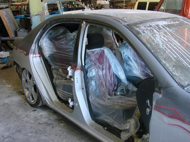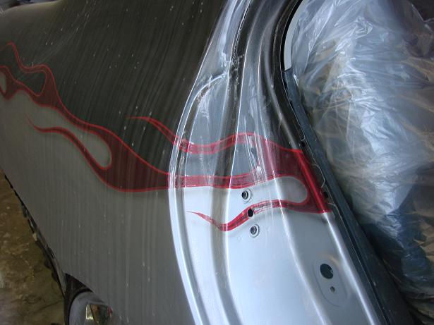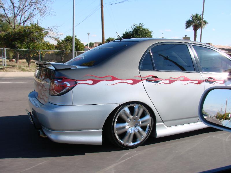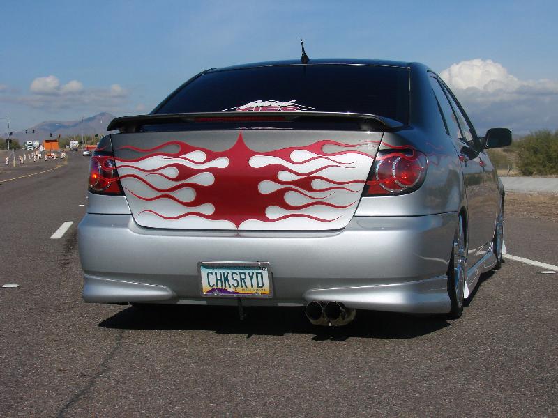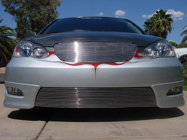 CLEAR TAILIGHTS, UPPER AND LOWER BILLET GRILL, SHAVED EMBLEMS, SHAVED TRUNK, CLEAR HEADLIGHTS WITH FLAMES PAINTED INSIDE, FLAMES IN THE TINT BY PERFECT SYMMETRY, PAINT DONE BY METAL ASYLUMN KUSTOMS (480)213-9618