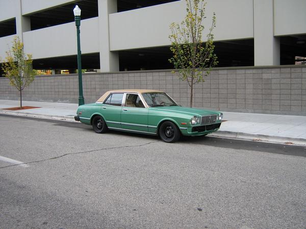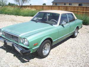 Stock green, Tan vinyl top, 78 Cress wagon stainless wiper arms, H4 EMPI headlight conversion, and removed front bumper