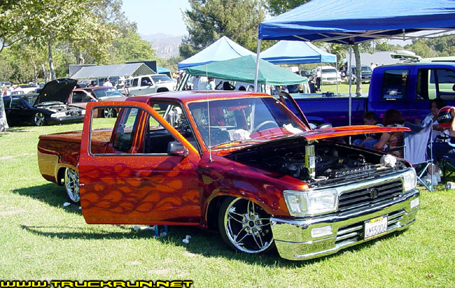 FLAKED OUT TANGARINE KANDY WITH TRIBAL FLAMES THROUGH THE TRUCK WITH TWO MURALS ONE IN THE HOOD AND ONE IN THE BED COVER