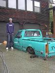 6" body drop, some minor shaving, primered army green. Big hole in the hood. Rocker cut off to lay door.