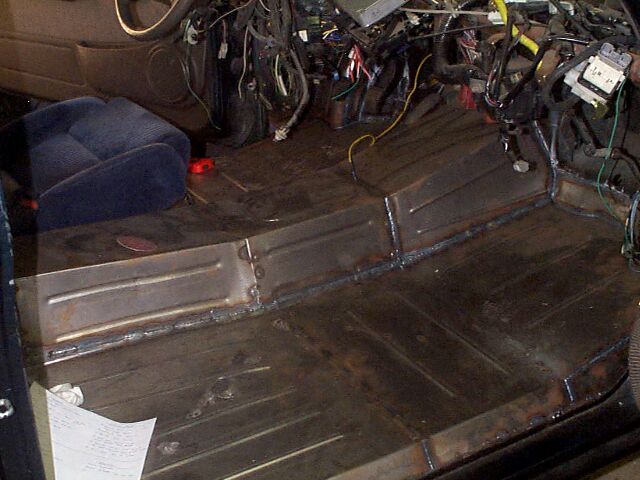 Stock floor gutted for new sheetmetal floor for stock floor body drop.