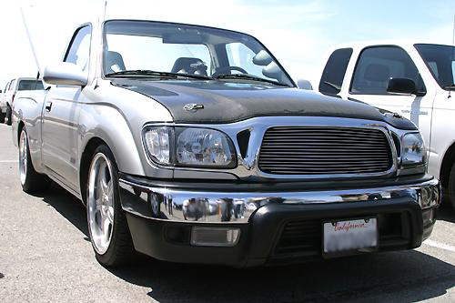 4runner chrome front bumper, chrome rear bumper, grill surround & door handles, Street Beat billet grill, Trenz billet antenna, VIS carbon fiber hood, shaved tailgate handle, euro tails, snuglid