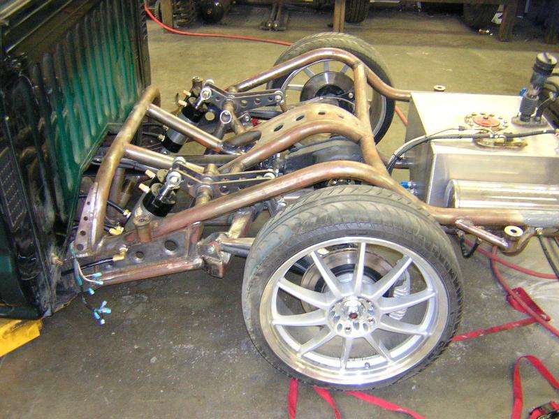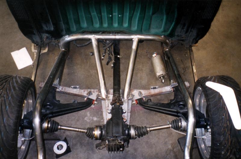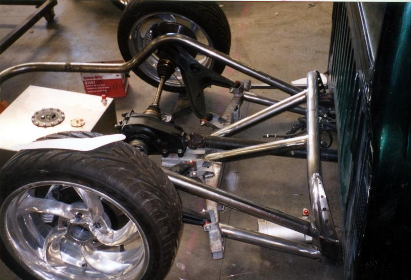 UNDER CONSTRUCTION, Independent Rear Susp., 1/2 inch valves with Air Cylinders from EAI (Excentrix Auto Innovations), http://www.excentrixauto.com/ Full Tube rear sub-frame built by Brian Jendro at TEMECULA RODS & CUSTOMS, So Cali 909-506-4649