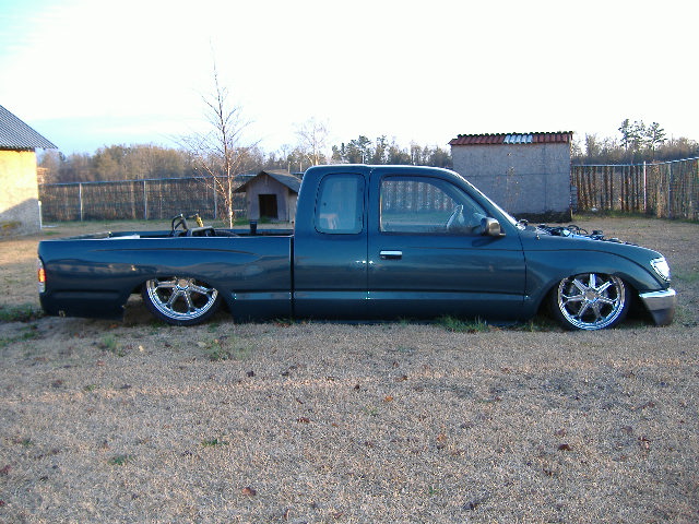 2 Reds Pro series pumps (painted) 2 Optima batters, chrome 6" cylinders in front, chrome 16" cylinders in rear mounted on power balls, Custom tubeing bridge, custom C notch, custom 2-link, ball joint relocaters