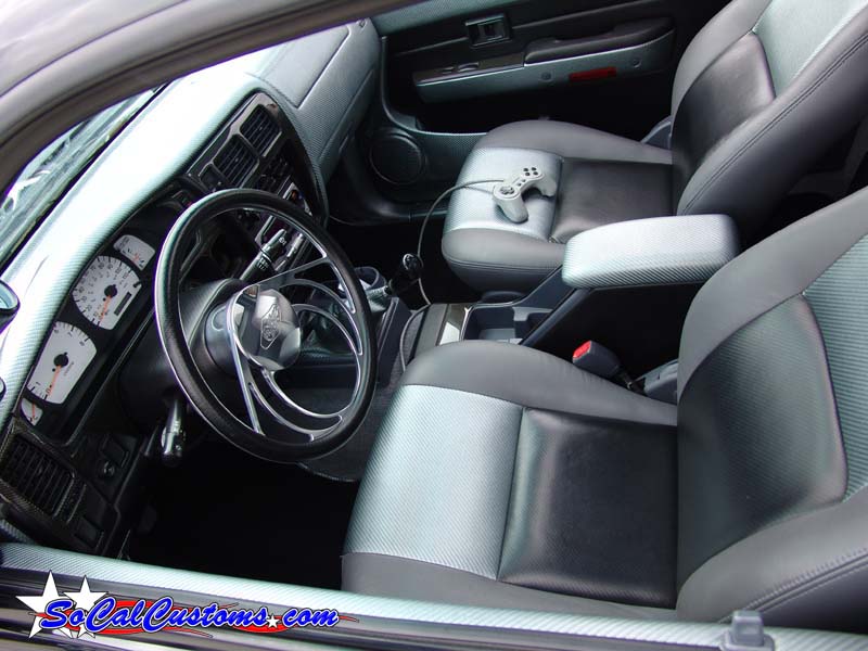 Silver & Black Carbon fiber upholstery, Carbon Fiber dash inserts, custom mats in Mercedes black carpet w/silver carbon fiber piping, NR auto white face gauges, carbon fiber shift knob, custom billet pedals, seat levers, a/c face plate, glove box handle, strut covers, Custom fabricated dual gauge pod A-pillar, B.A.D. “fusion” billet steering wheel, Le Carra adapter, Full enclosure in bed painted black w/ghost flames, billet gas fill door, carbon fiber on tonneau with ghost flames.
