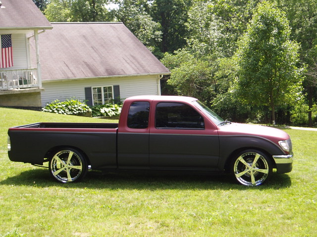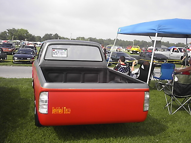 shaved door handles, mirrors, and third brake light. 4x4 fenders.shaved tailgate, rollpan