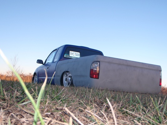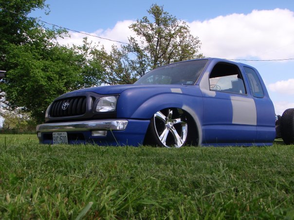 01 front end,3.5" traditional body drop,Tailgate skin,shaved gas door, shaved mirrors, shaved door handles, shaved tail lights, shaved 3rd brake light, shaved front corner markers,some sanded down flat blue and gray primer hope to have all one color soon.