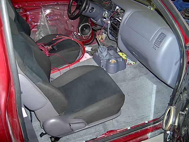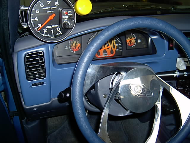 BAD Formula steering wheel. Shaved heater vents with Autometer cobalt air/fuel, boost, and EGT gauges. 5" Autometer tach w/ shiftlite. Recently installed 2000 Celica GTS bucket seats.