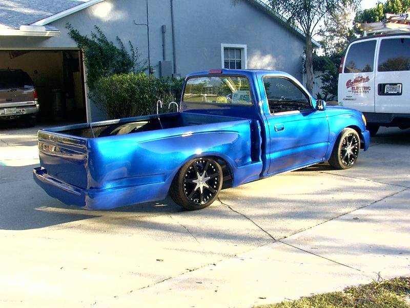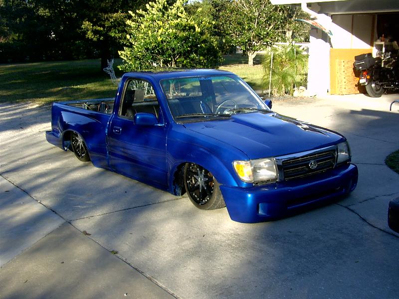 shaved bed, LED tails, bodydropped, custom one off hood, one off front bumper