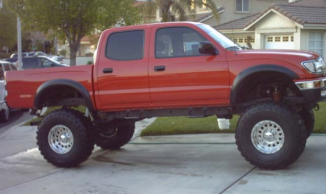 roll pan, paint all the plastics red. black and charcoal grey interior,18"rockstars on 37" toyos, tribal tint, more kickers.