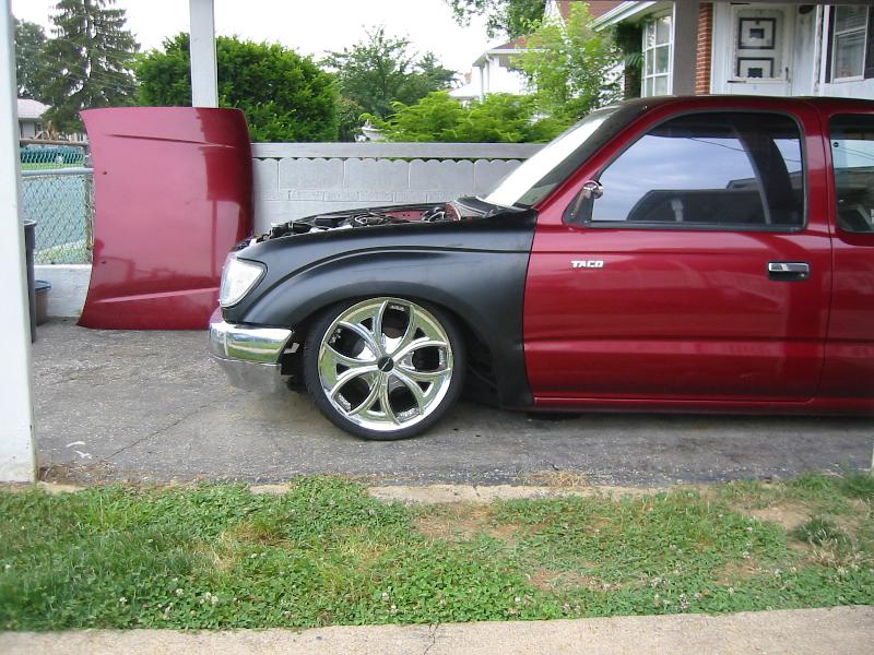 1997 4wd fenders w/ 2004 fender flares added, shaved antenna, shaved full rear end tailgate included, shaved gas door, shaved mirrors with harley billet mirrors in place of stocks, 1998 soild back window (replaced slider window), shaved body lines under rear window, custom made cowl hood to fit my truck, diamond clear headlights, 4wd clear corners, 2001 rear tail lights, 1997 4wd bumper and valance combo with trenz billet insert , and a trenz billet grill, exterior as of now under consruction