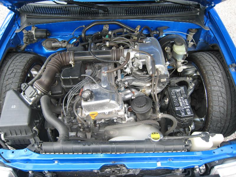 Stock 4cyl with polished valve cover and intake manifold and mass air flow sensor holder.