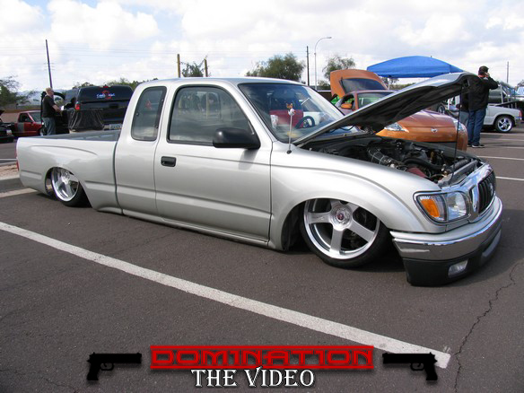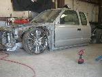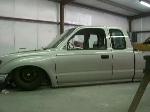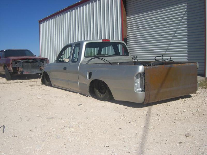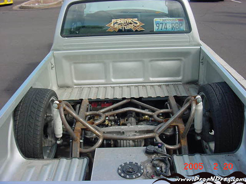 Stock Floor full frame. RX7 IRS fast bagged. Custom lower control arms with uni-balls, heim ends and D.O.M. tubing by Rudy's Rod & Custom. Slam Specialties sponsored 1/2" Digital Stealh Valves controlled by Slam Specialties Digital Stealth Controller, Slam Specialties rs-62 1/2" port all four corners. Sponsored three all silver Air Zenith compresors.