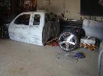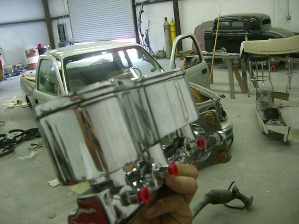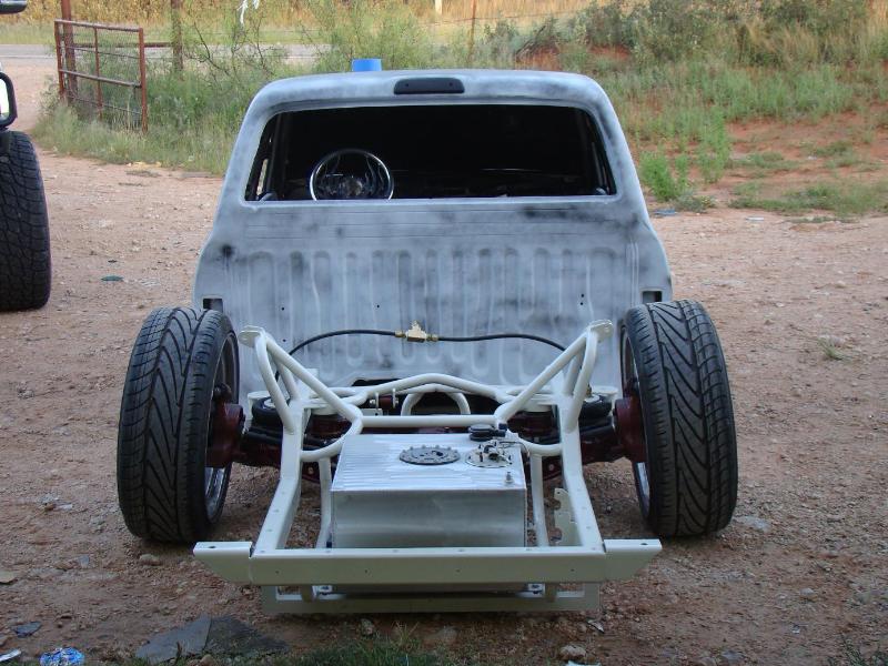 K&N intake, wheel tubs, Chrome Chrome electric high power brake booster from ABS Power Brake Inc with all steal braided lines. Moved battery to under the bed. 15gal fuel cell. Electric fan. Candy Maroon valve cover & intake manifold, silver painted engine(POR-15 engine enamel). needs to be put in.