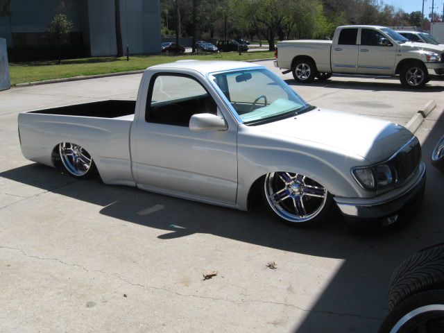 2002 Front end, shaved door handles, molded tailgate and rollpant. Painted White Diamond By Bryan @ RF Customs.