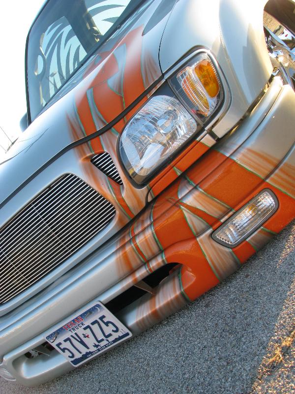 Stock silver with PPG Brite Orange with gold flake graphic.