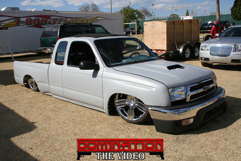 2000 4runner front clip. Shaved: Front corners, handles, mirrors, squirters, third brake light, cab lines, antena, tail gate handle, gas door. 59 caddy tail lights, molded SR5 hood scoop. Fully smoothed and sheel metaled bed floor.
