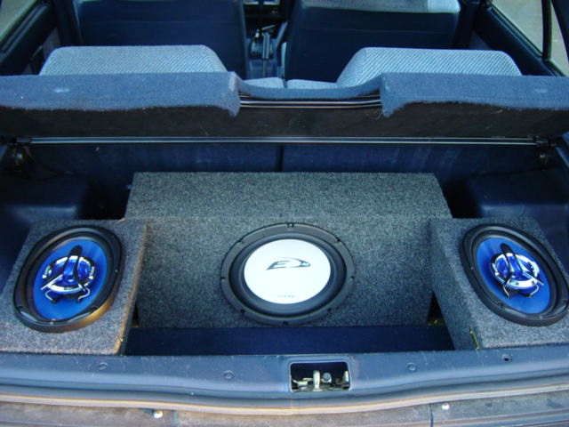 pioneer flip face deck with a 250watt kenwood amp powering a Alpine type E 10" and two Clarion 6x9's running off the deck. Two 4 inch Alpine Type S two-ways in the dash